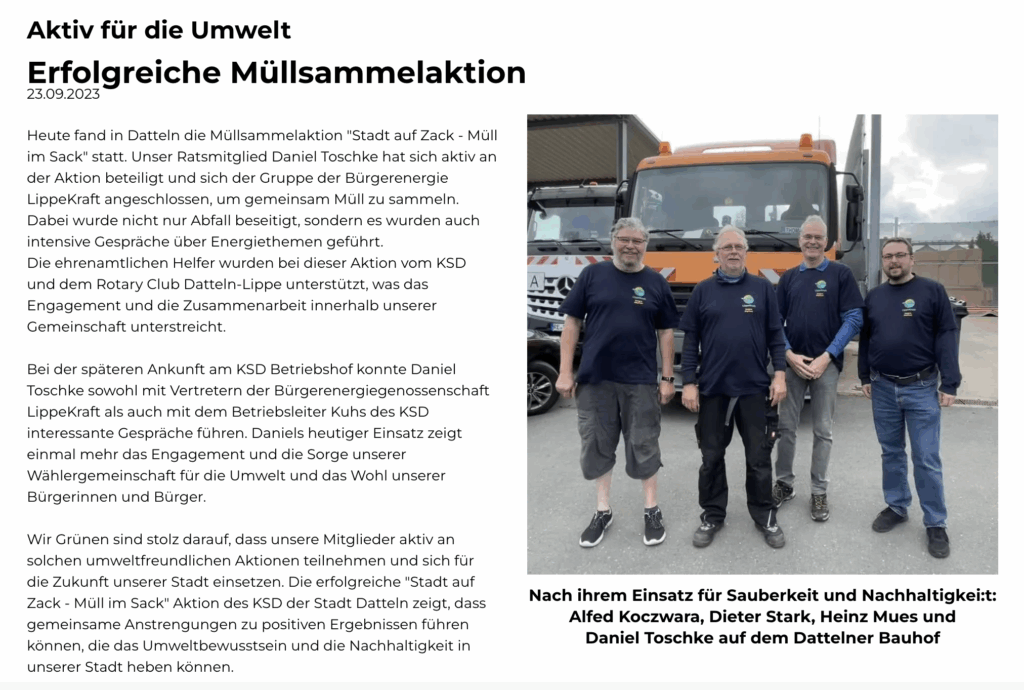 Wie auf der Seite https://www.gruene-datteln.de/ gestern berichtet, bin ich gestern wieder bei der Aktion Stadt auf Zak Müll im Sack mit gelaufen.