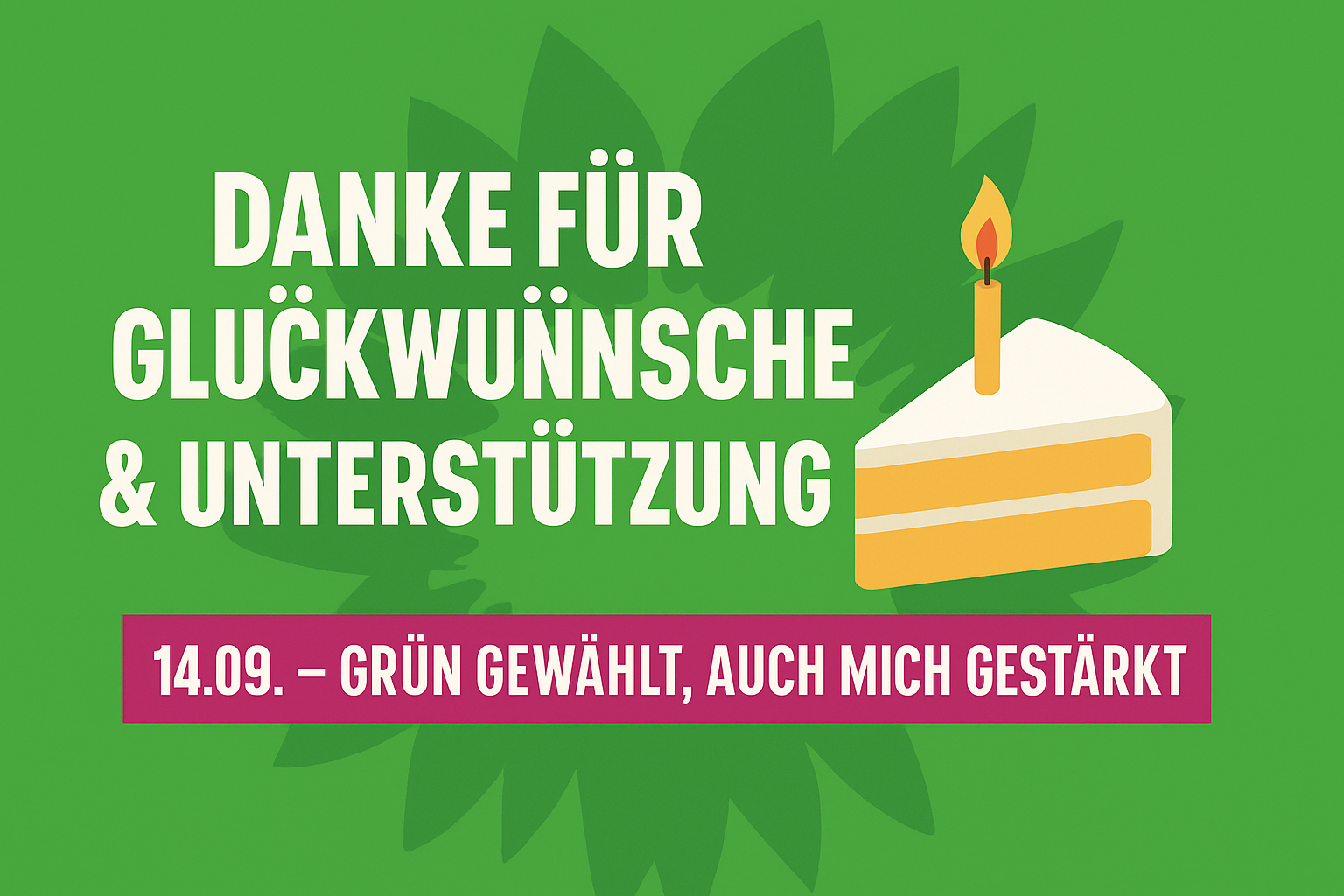 Besonders danke ich auch allen, die am 14. September bei der Kommunalwahl einen grünen Kandidaten gewählt haben. Jede Stimme für Grün war zugleich auch eine Stimme für mich. Leider hat es für einen Sitz im Rat der Stadt diesmal knapp nicht gereicht – ich bin nun der nächste Nachrücker. Das ist natürlich ein Ansporn, weiter engagiert für unsere Stadt und unsere Themen einzutreten.