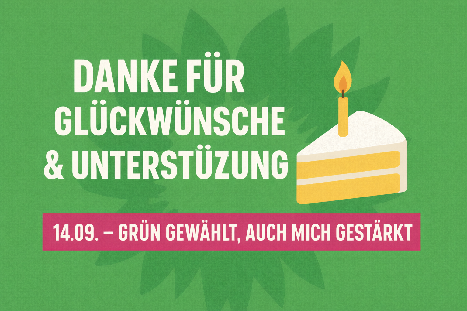 Besonders danke ich auch allen, die am 14. September bei der Kommunalwahl einen grünen Kandidaten gewählt haben. Jede Stimme für Grün war zugleich auch eine Stimme für mich. Leider hat es für einen Sitz im Rat der Stadt diesmal knapp nicht gereicht – ich bin nun der nächste Nachrücker. Das ist natürlich ein Ansporn, weiter engagiert für unsere Stadt und unsere Themen einzutreten.